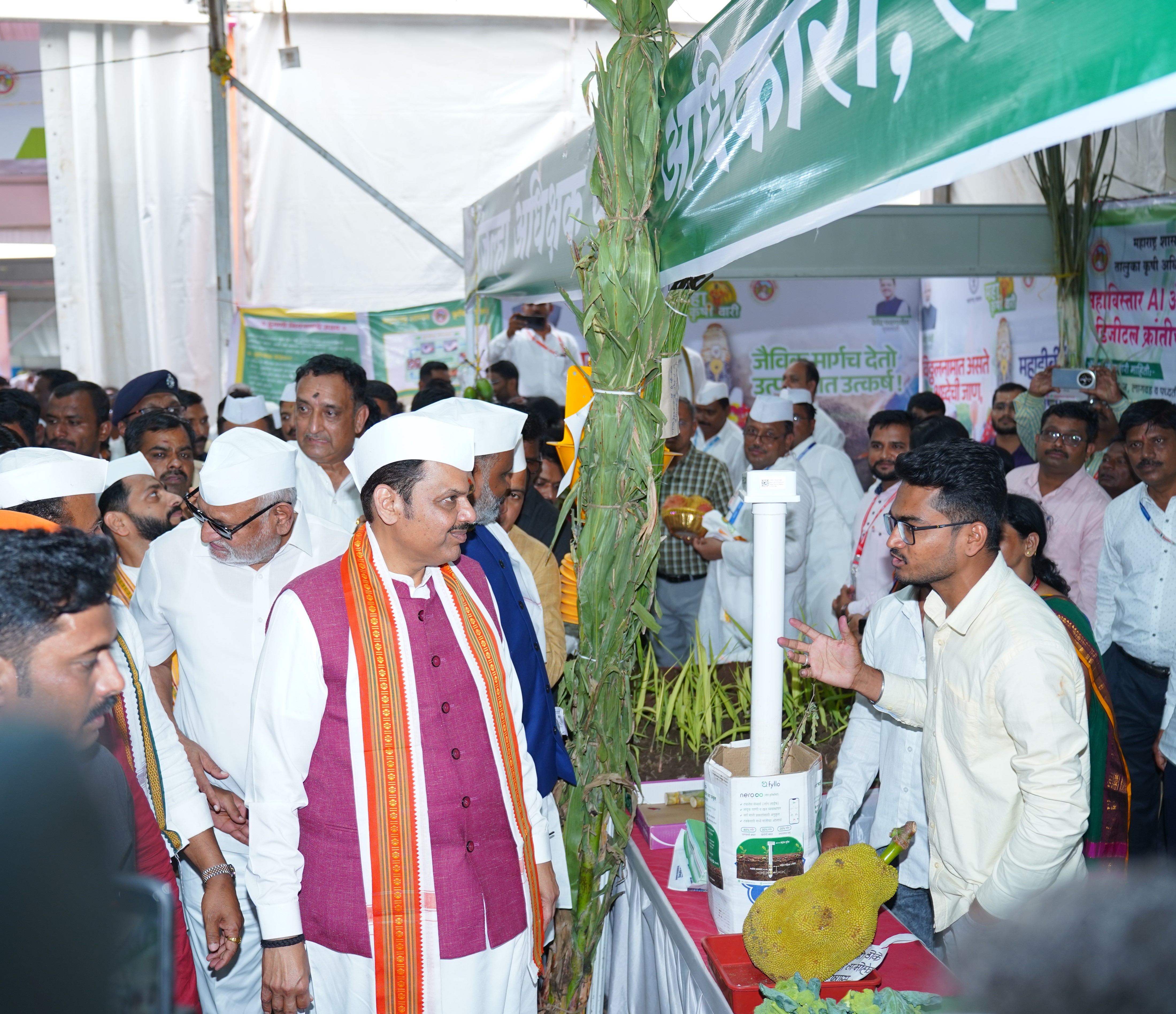 Solapur District MLA Hon. Shri. Prashantraoji Paricharak Saheb has initiated a state level agricultural exhibition for the convenience of farmers and a grand farmers' fair. This agricultural exhibition and farmers' fair were inaugurated by the auspicious hands of the Chief Minister of Maharashtra, Hon. Shri. Devendraji Fadnavis Saheb.